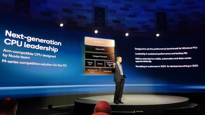 IC: So you mentioned Nuvia a couple of times, a topic very dear to my heart. I’ve met with Gerard, Manu, and John pre-acquisition, and I was really looking forward to their server chip they were going to produce. So I must admit a little bit of me died when you guys acquired them, but I must applaud that it was a clever move in acquiring them. Given what Qualcomm CEO Cristiano Amon was saying at the time, saying about ACPC since its inception, it really is the direction it needs to go in. I know Nuvia is more the topic for next year’s summit, as you’ve said sampling in 2022, product in 2023. How is that acquisition going, and how is the team integrating?