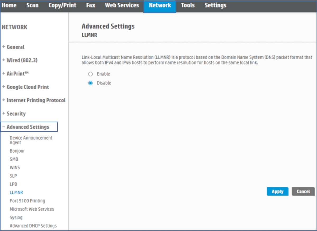 HP owners and system administrators should check the published table to find out if printers that are in use in the home, business or enterprise environment are affected. Firmware updates are available for some of the printer models, for others, mitigations are provided to disable LLMNR.