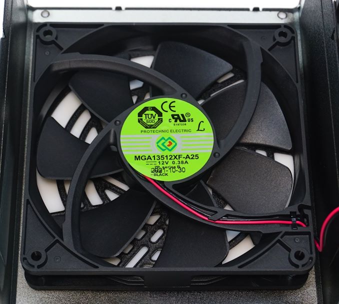 FSP entrusted the cooling of their PSU to Protechnic Electric, whose MGA13512XF-A25 fan can be found underneath the finger cover of the PSU. The 135 mm fan has a fluid-dynamic bearing (FDB) engine and a very high maximum rotational speed of 2100 RPM.