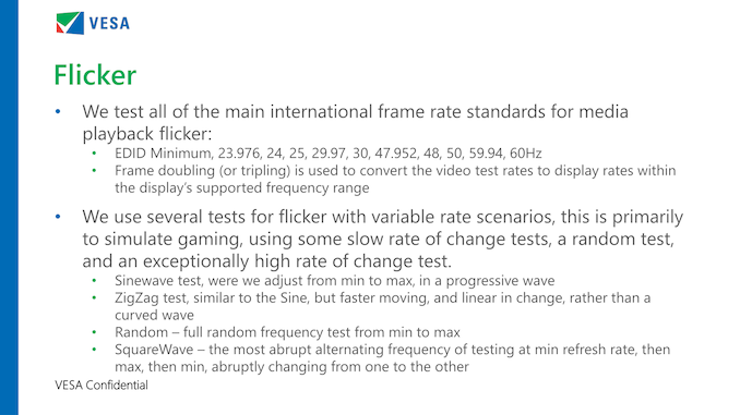 And while the AdaptiveSync display conformance test doesn’t have an explicit test for backlight or gamma flicker (a somewhat common problem in early Adaptive-Sync displays), according to the group, they believe their flicker test should be sensitive enough to pick up on those specific phenomena.