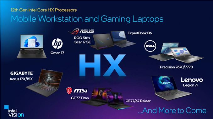 As does happen when a new series of mobile processors get announced, along with it comes a plethora of new laptop announcements. While we expect there to be many to be announced over the coming days and weeks from vendors such as Lenovo, HP, ASUS, Dell, MSI, and GIGABYTE, Intel has already provided model numbers on a few expected launches to supplement its own launch of the Alder Lake-HX series.