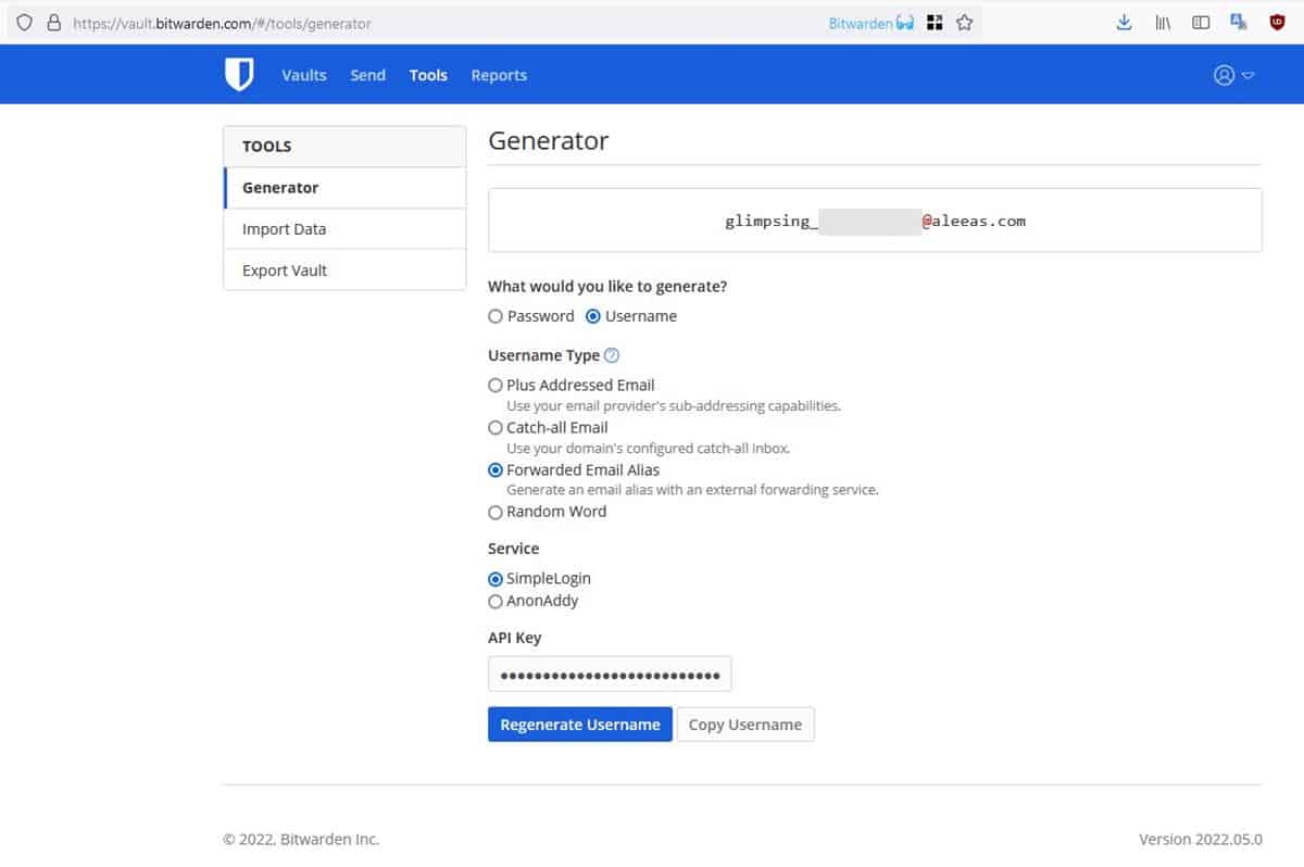 Bitwarden’s username generator now supports SimpleLogin, AnonAddy, and Firefox Relay email alias services