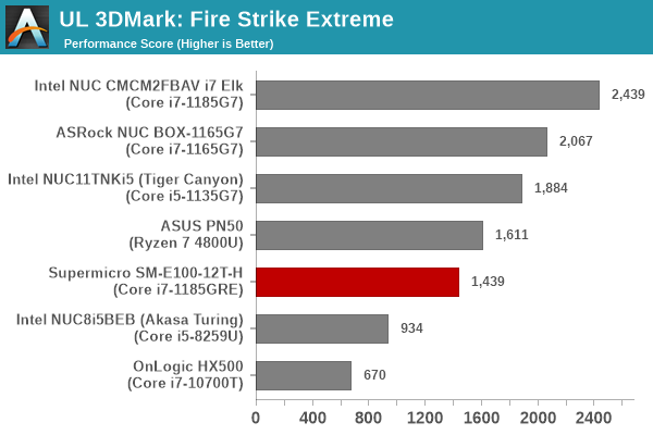 The Fire Strike benchmark sees the Renoir iGPU and the SM-E100-12T-H’s Iris Xe perform very similarly. Otherwise, the observations made in the GFXBench subsection hold true here.