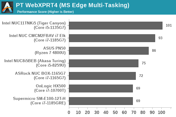 The NUC11 Elk Bay / Fort Beach combination and the ASRock Industrial NUC BOX-1165G7 are included because they utilize Tiger Lake Core i7 processors operating with the same number of cores and cache size, albeit at a higher TDP. The Tiger Canyon NUC11TNKi5 is included as a Tiger Lake representative with the same number of cores, albeit with lesser amount of cache and a higher TDP. The ASUS PN50 is a representation of AMD’s offering in this domain, though not targeting the same niche. The OnLogic HX500 and the Intel NUC8i5BEB (Akasa Turing) are included for their fanless nature. Both systems are passively cooled, but have a larger physical footprint to accommodate the higher TDP of the processors used in them. The next few sections will deal with comparative benchmarks for the above systems.
