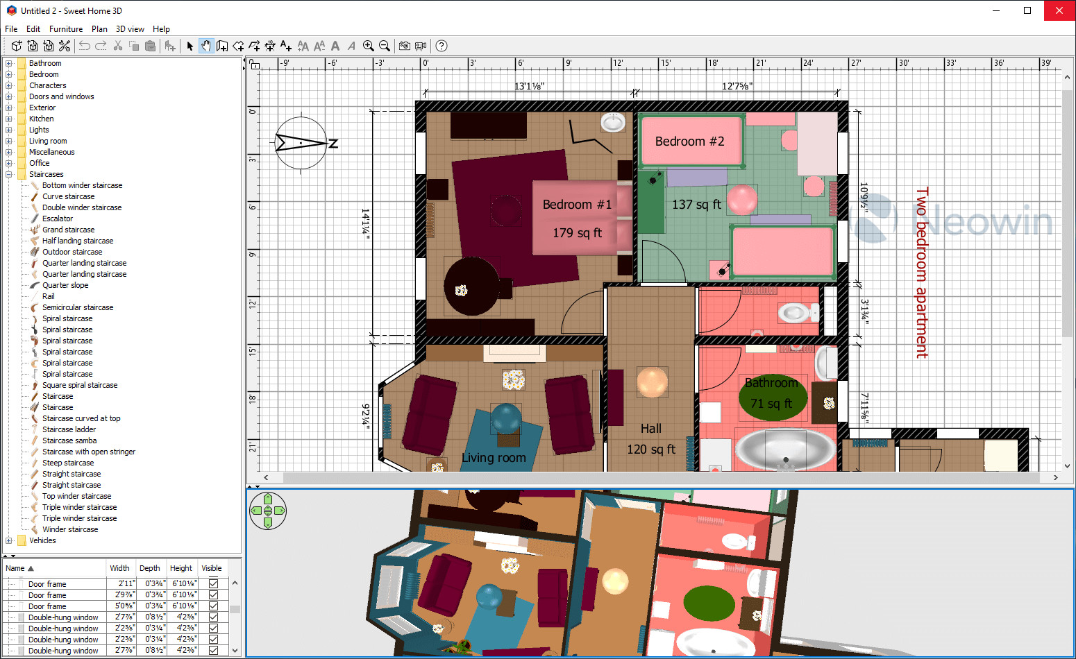 • Insert doors and windows in walls by dragging them in the plan, and let Sweet Home 3D compute their holes in walls.