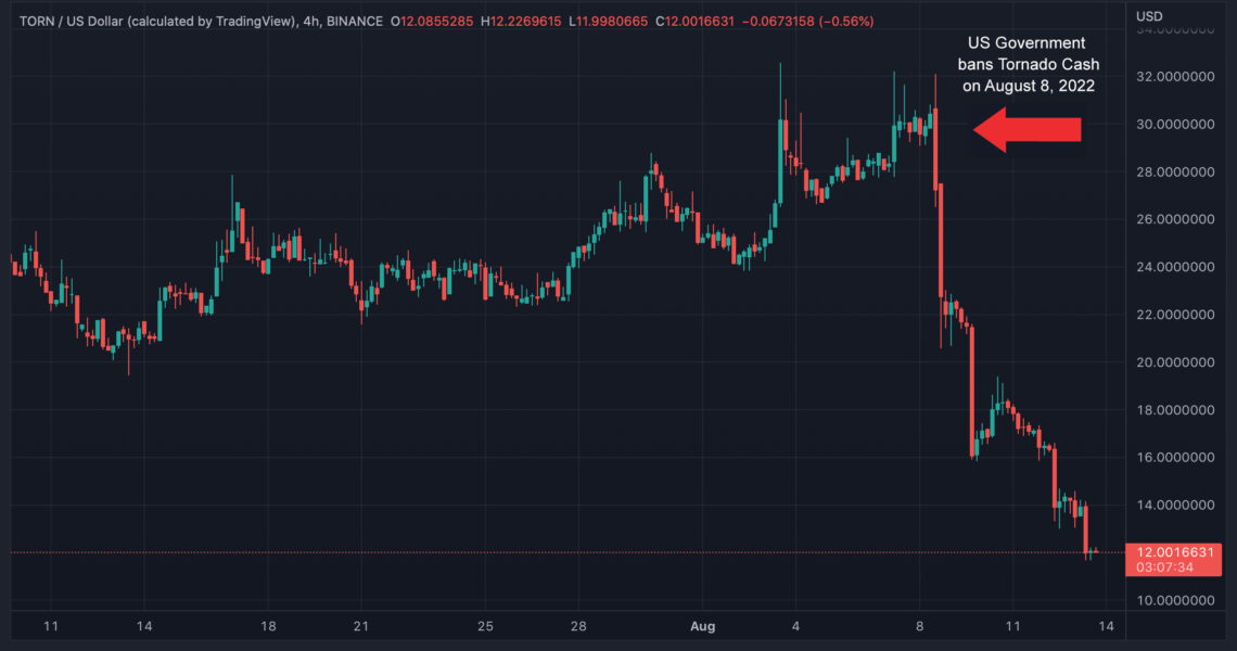 Tornado Cash Governance Token TORN Shudders More Than 57% Since the US Government Ban