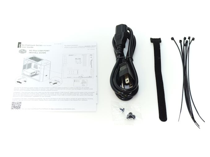 Besides the typical AC power cable, mounting screws, and a basic instructions leaflet, Cooler Master also bundles a number of cable ties and a few cables straps alongside with XG Plus Platinum.