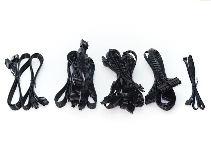 The XG Plus Platinum is an all-modular design, allowing for the removal of every DC power cable, including the 24-pin ATX connector. All of the cables are bare, ribbon-like, with black wires and black connectors. There is no floppy connector or adapter.