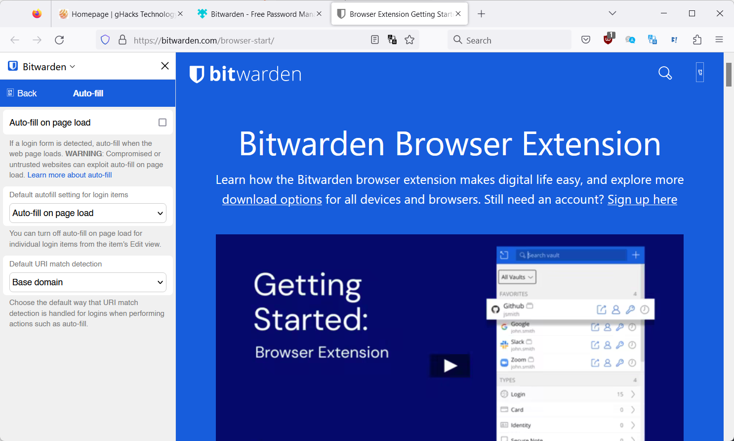 Bitwarden auto-fill on page load