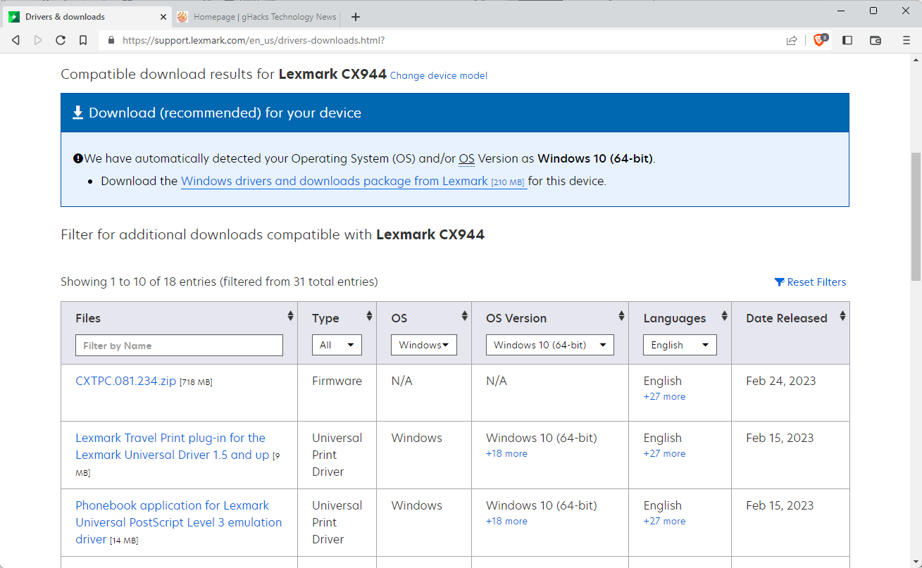 Lexmark customers may also download updated firmware manually and install it on the printer to resolve the issue. The best starting point is to use Lexmark’s official drivers & downloads support page to search for updates for a particular printer model.