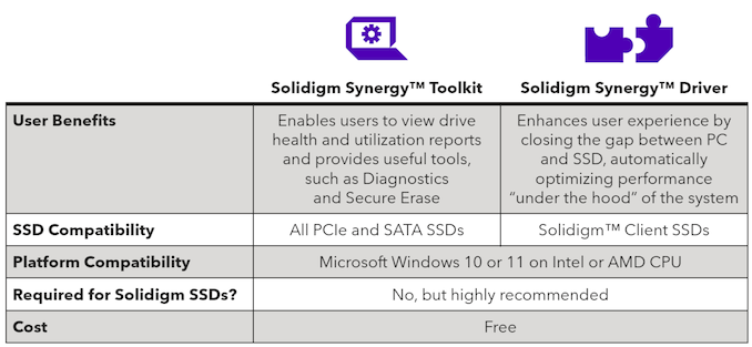 Solidigm’s Synergy 2.0 has two components – a Synergy Toolkit, and a Synergy Driver. While the toolkit taps into the SMART support and Windows performance counters and supports a variety of SSDs, the Synergy Driver is obviously supported only on Solidigm’s client SSDs.