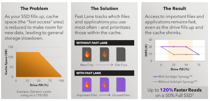 Read caching is of help only when the drive is not full enough to actually make the cache size too small to be of good use. Solidigm claims that this technique helps most in drives that are between 25% to 75% full
