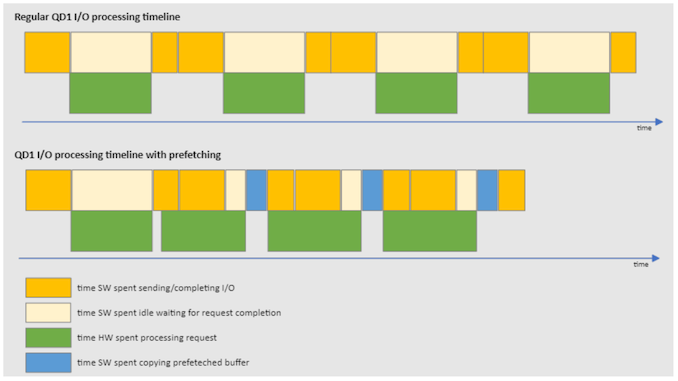 The Synergy Driver includes a feature that analyzes the storage trace of an application in real-time to detect predictable read operations. When the access queue depth is low and operations are sequential in nature, it is possible to predict the next access and prefetch it prior to the actual application request. This can increase responsiveness from an user experience perspective.
