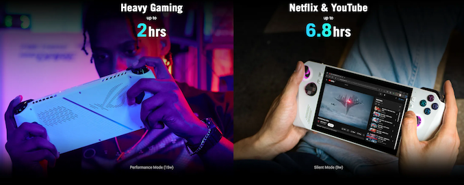 Meanwhile, the trade-off to hitting their weight target while still using a relatively powerful SoC has been battery life. The Ally comes with a 40Wh batter, and Asus officially advertises the handheld as offering up to 2 hours of battery life in heavy gaming workloads. Early reviews, in turn, have matched this, if not coming in below 2 hours in some cases. The higher-resolution display and high-performance AMD CPU are both key differentiating factors of the Ally, but these parts come at a high power cost.