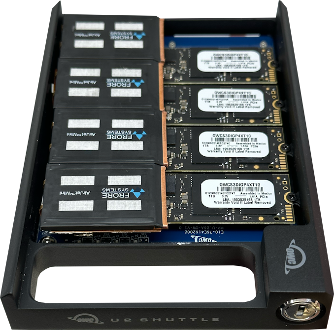 OWC’s Mercury Pro U.2 Dual and U2 Shuttle are essentially PCIe 3.0 SSD carriers, and such drives do not tend to get very hot, so applying Frore’s premium AirJet cooling technology to them sounds overkill. But there are two things to note here. First, OWC’s Mercury Pro U.2 Dual comes with a 3,000-rpm fan, and the device is not completely quiet out-of-box, so using AirJets removes the fan and makes it utterly quiet. Secondly, by using Frore’s AirJets with existing carriers, OWC sets the stage for subsequent generations of Mercury Pro U.2 Dual and U2 Shuttle that will house faster and hotter SSDs requiring decent cooling to ensure consistent performance.