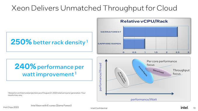 And while we didn’t get a max core count for Sierra Forest, Intel did make an interesting comment in our pre-briefing that they could have gone higher with core counts for their first E-core Xeon Scalable processor. But the company decided to prioritize per-core performance a bit more, resulting in the chips and core counts we’ll be seeing next year.