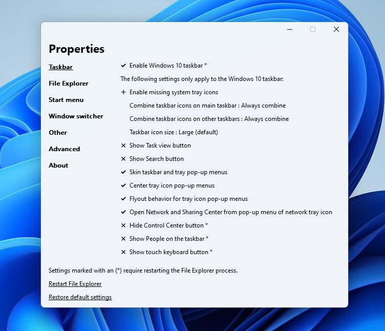 • Choose between Windows 11 or Windows 10 taskbar (with labels support, small icons and lots of customization).
