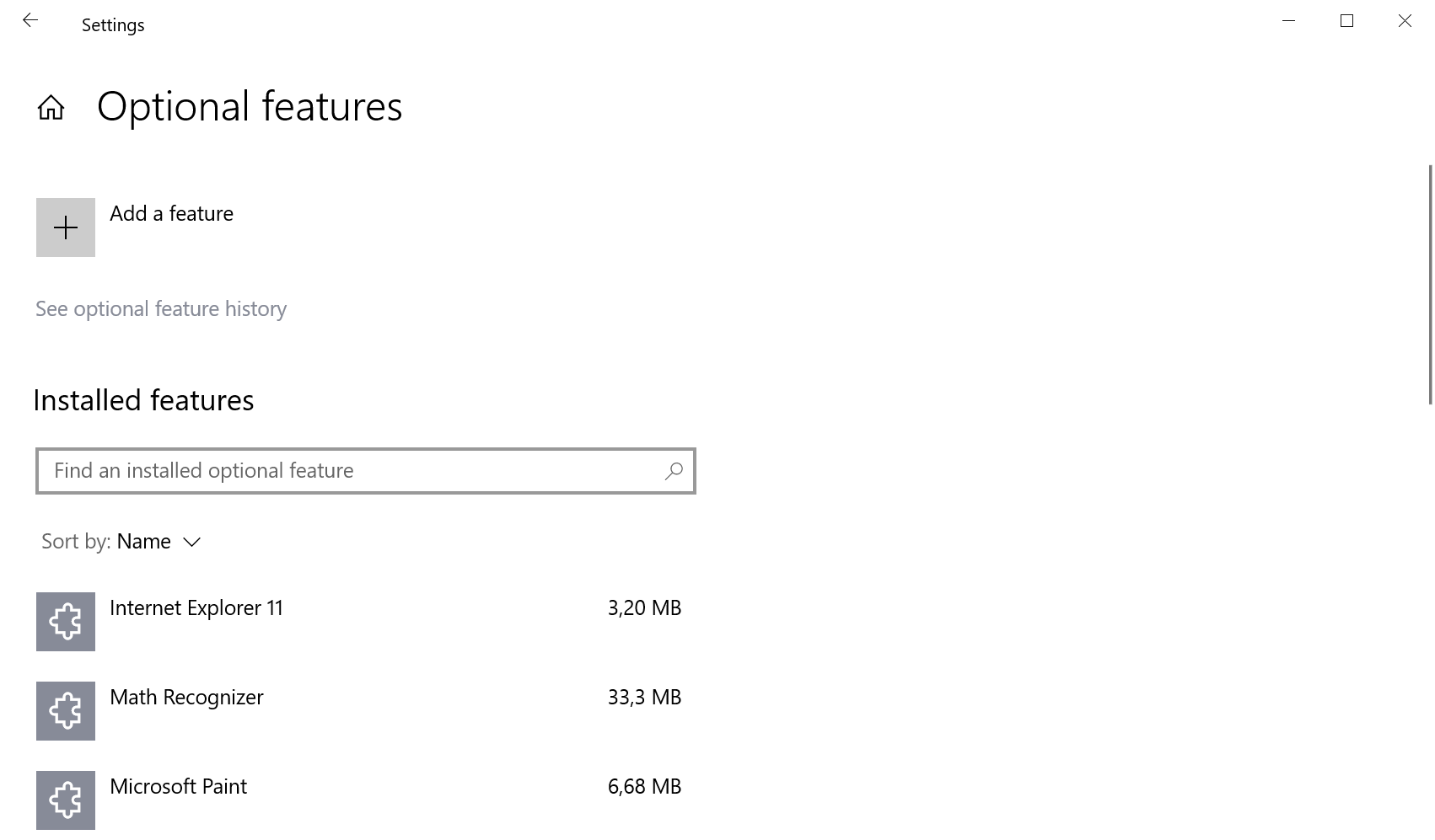 Windows administrators may list optional features in the Settings app. An easy way to get there is to open Start, type optional features and select the manage optional features item that is returned. Windows lists all optional feature that are installed on the page. The “add a feature” button displays all available features that are not installed at the time.