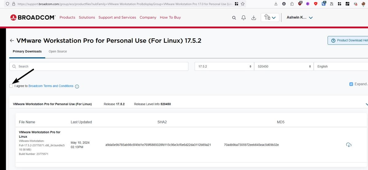 I found Broadcom’s website to be quite slow while trying to access the downloads, so you may have to be a bit patient with it. On the other hand, if you don’t want to register for an account, you can get the apps from the official website: VMware Fusion 13.5.2 and VMware Workstation Pro 17.5.2. (Links courtesy reddit user SJPS).