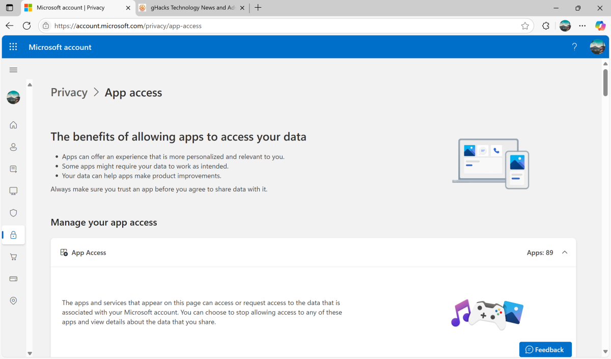 - Load the following address in your favorite web browser: https://account.microsoft.com/privacy/app-access